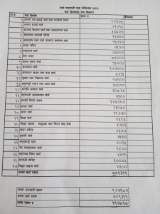 केही रकम उठ्न बाँकी रहेको जानकारी दिदै महोत्सवको कुल खर्च कटाएर १ लाख ९७ हजार ८ सय ६८ रुपैयाँ बचर रहने उहाँले बताउनुभयो ।