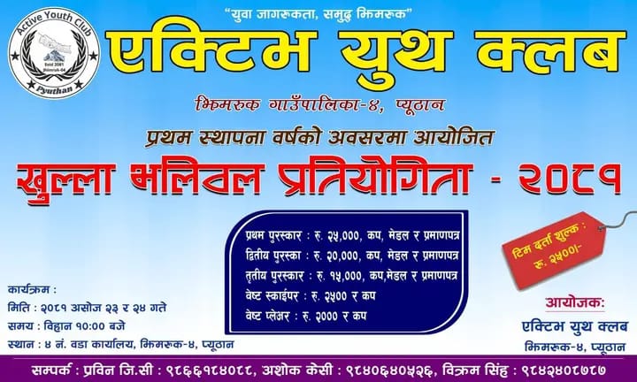 प्यूठान । एकीकृत कृषि तथा पशुपन्छी विकास कार्यालय प्युठानले आर्थिक बर्ष २०८१/ ८२ को बार्षिक स्वीकृत कार्यक्रम सार्वजनिक गरेको छ । मंगलबार कार्यालयले जिल्ला समन्वय समितिको सभाहलमा एक कार्यक्रमको आयोजना गरि बार्षिक कार्यक्रम सार्वजनिक गरेको हो । निमित्त कार्यालय प्रमुख उमेश चन्द्र श्रेष्ठले बार्षिक कार्यक्रम सार्वजनिक गर्दै आर्थिक बर्ष २०८१/८२ का लागि ६ करोड ३७ लाख ९२ हजार रुपैयाँ बजेट विनियोजन भएको बताए । गत आर्थिक बर्ष २०८०/८१ को भन्दा यस बर्ष २ करोड रकम घटेर आएको बताए । कृषि तथा पशुपन्छी उत्पादन, बजारीकरण, नियमन, प्रविधि, प्रचार अन्तर्गत प्रधानमन्त्री कृषि आधुनिकिकरण परियोजना (संघीय सर्तत अनुदान ) कृषि तथा पशु सेवा विभाग संघीय सर्तत अनुदान ) अन्तर्गत विनियोजित बजेटबाट जिल्लामा विभिन्न गतिविधि संञ्चालन गर्ने उनले बताए । यस बर्ष केही नयाँ कार्यक्रम थप भएका छ । करार खेती कार्यक्रम, डोर टु डोर पशु बाझोपन निवारण सेवा, पशु पोषण तथा प्रजनन् विकृति सुधार, कृषक प्राविधिक भेटघाट कार्यक्रम, पशुहरुमा निशुल्क कृत्रिम गर्भाधान, बंगुर प्रवर्धन, प्युठान नगरपालिकामा ब्यवसायिक तरकारी प्रवर्द्वन ,सरुमारानी गाउँपालिका २ मा फलफुल खेती प्रवर्द्वन कार्यक्रम थप भएर आएको श्रेष्ठले बताए ।